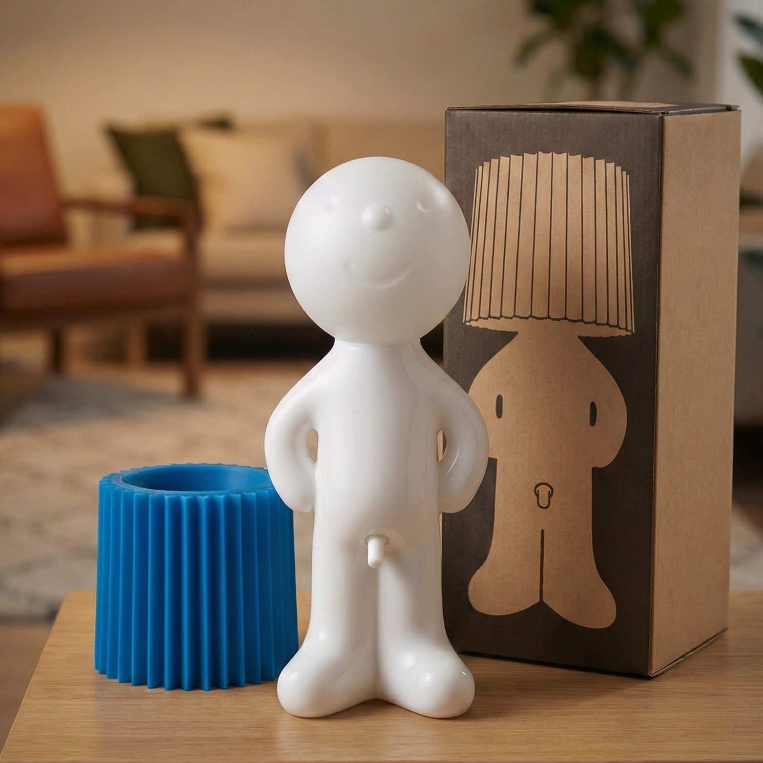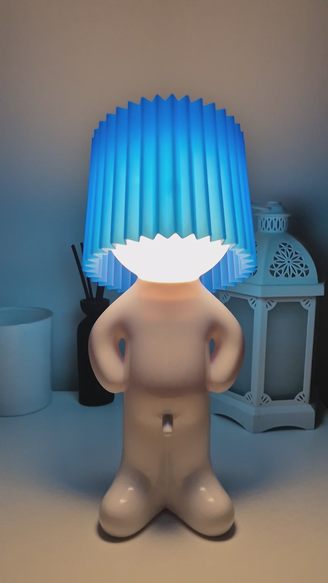 Larry the Lamp uses an energy-efficient, built-in LED unit that produces a pleasant, warm light — ideal for living rooms, bedrooms, or offices.