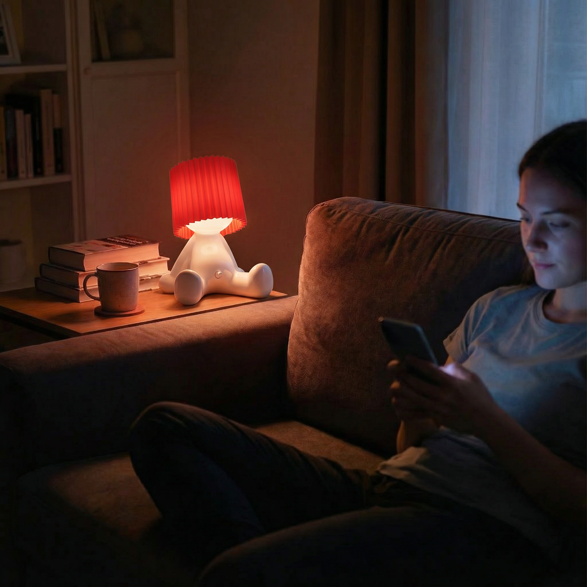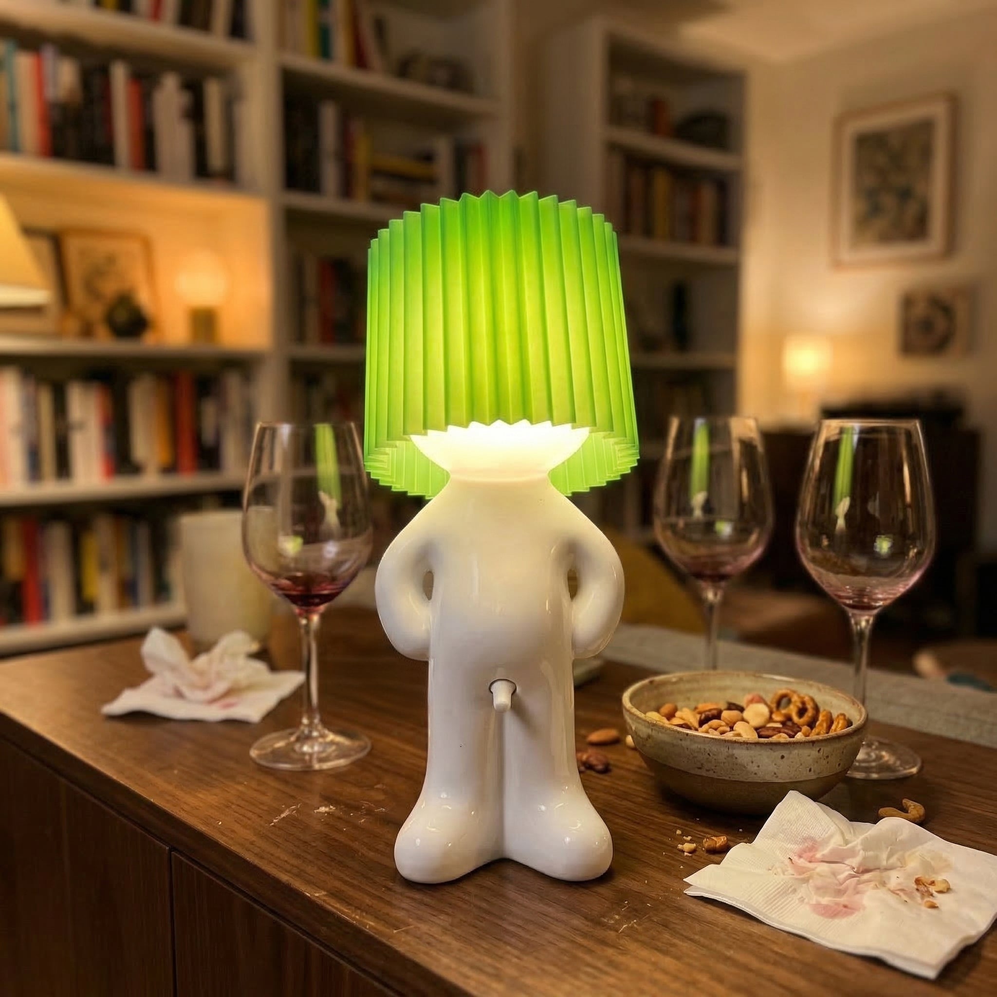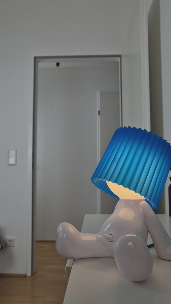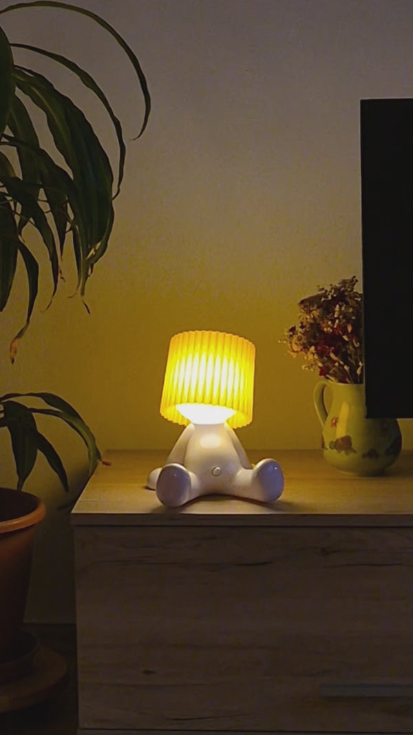 Larry the Lamp uses an energy-efficient, built-in LED unit that produces a pleasant, warm light — ideal for living rooms, bedrooms, or offices.