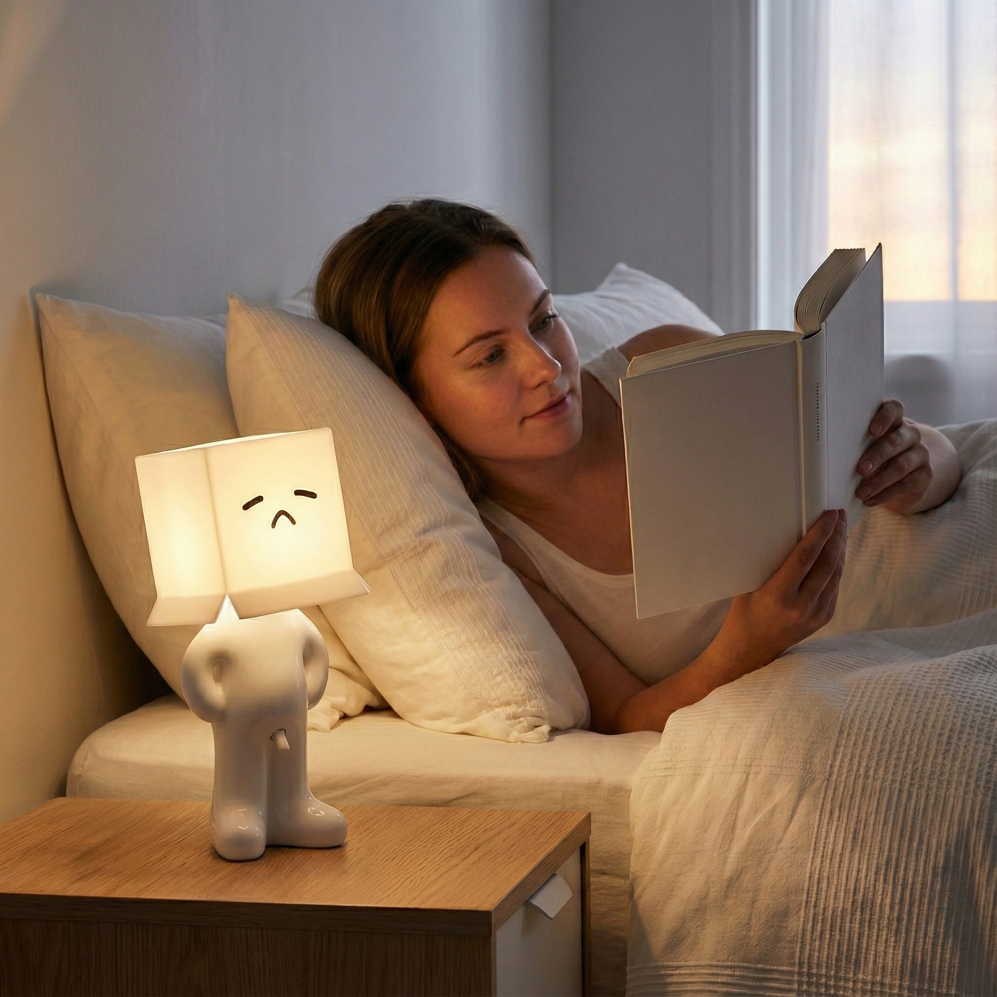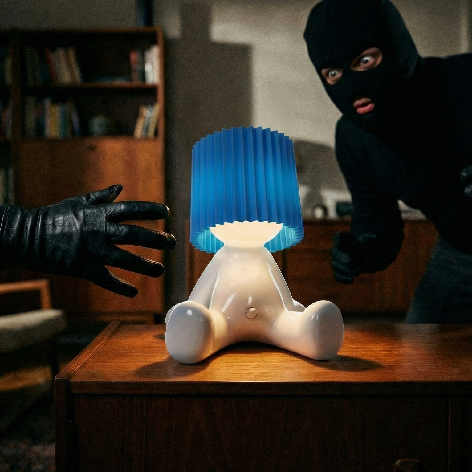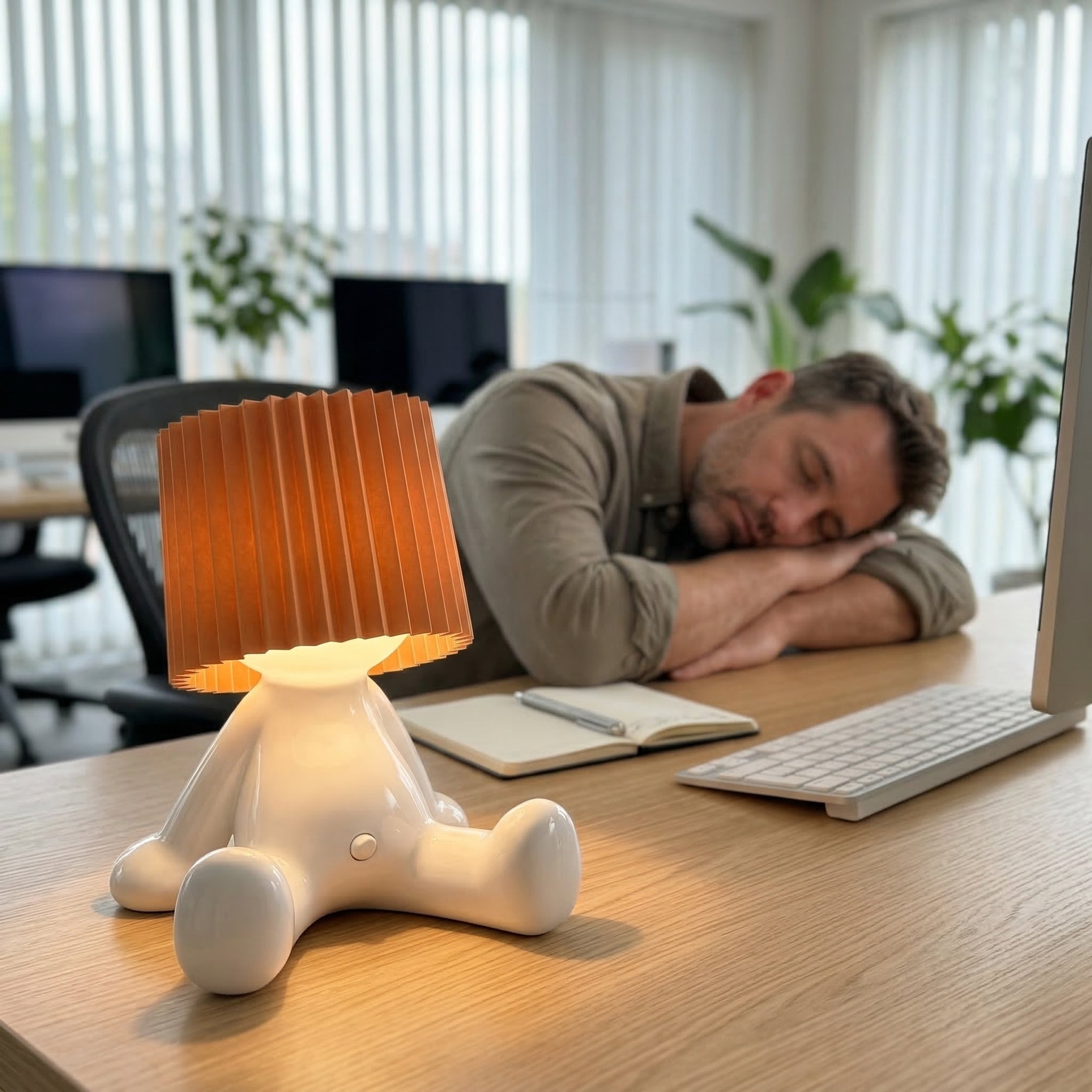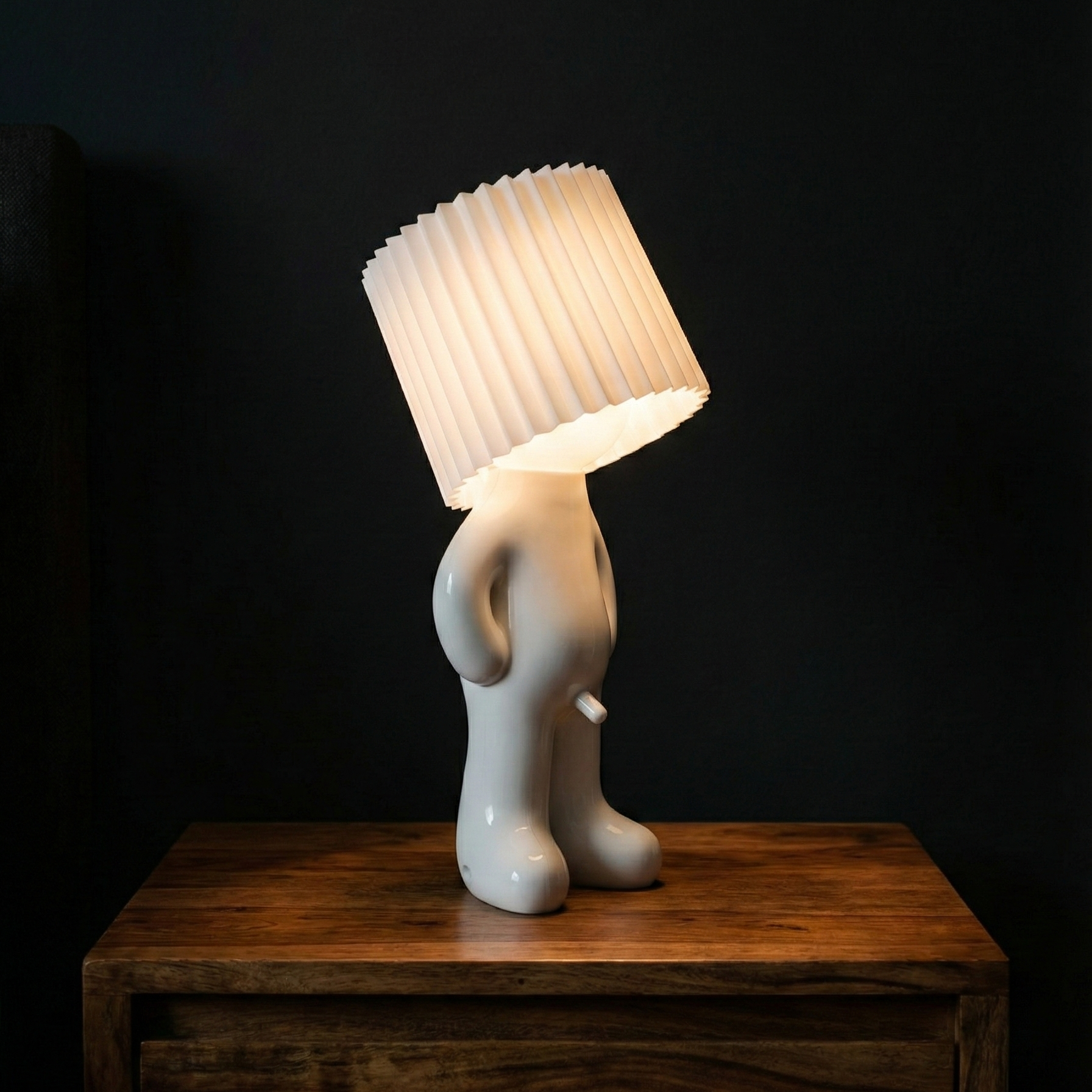 Larry the Lamp uses an energy-efficient, built-in LED unit that produces a pleasant, warm light — ideal for living rooms, bedrooms, or offices.