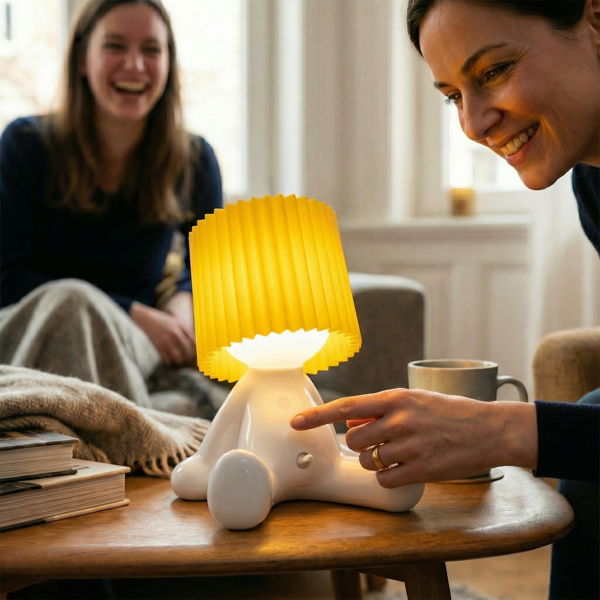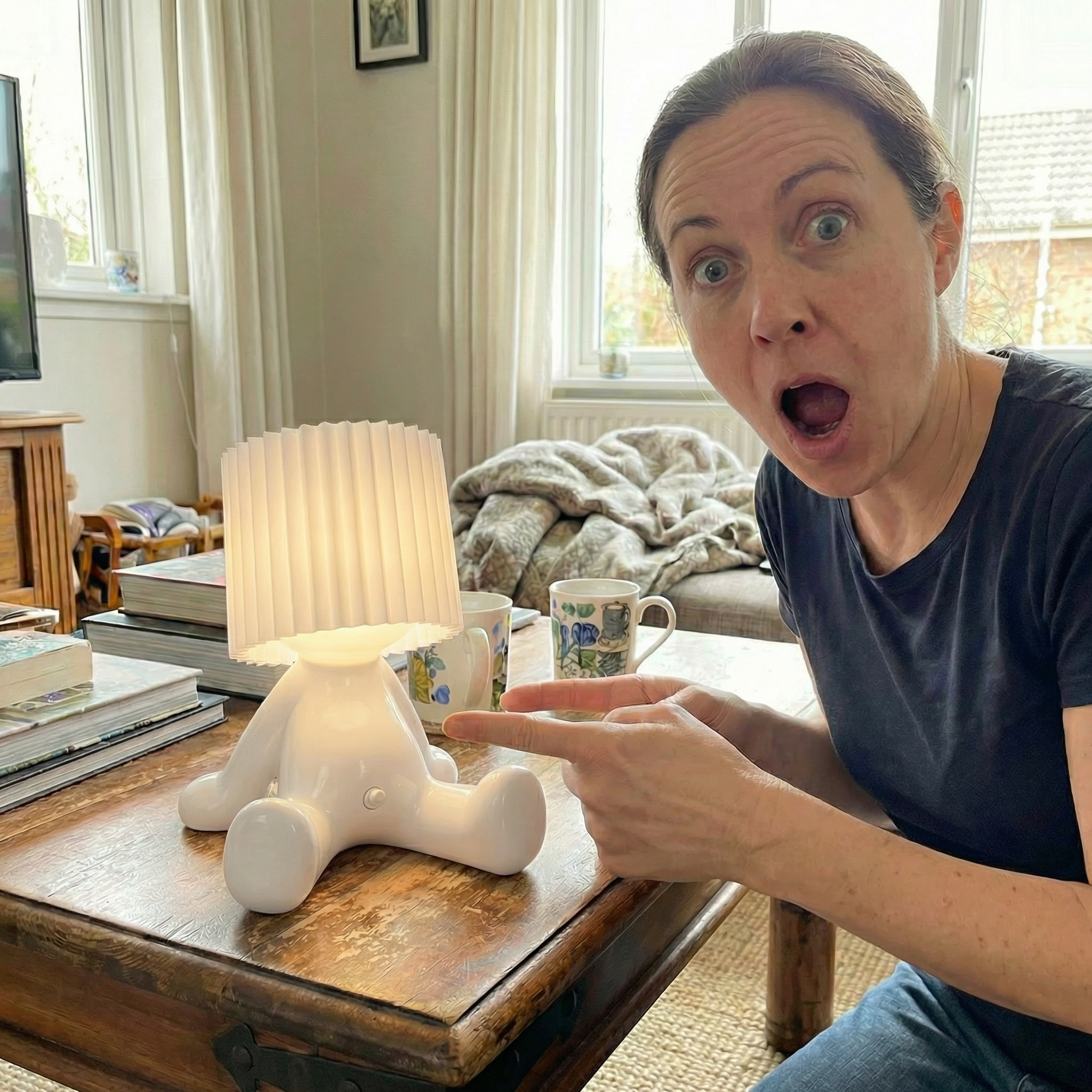 Important: Larry the Lamp has a built-in rechargeable battery and is charged via USB-C. No direct mains power is required, and no batteries are needed.